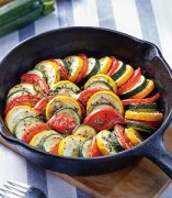 意式肉酱肉丸饭,意式烤节瓜,节瓜汤 【材料】 黄栉瓜1条 绿栉瓜1条 番茄2颗 蒜末5公克 巴西里末1公克 【调 味 料】 义大利香料少许 盐1/4茶匙 黑胡椒粒1/4茶匙 橄榄油2大匙 白酒2大匙 【做法】 1.绿、黄栉瓜及番茄洗净,切成厚约