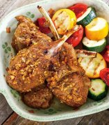 烤羊排的做法,劈哩啪啦,莎啦啦哩,咖哩烤羊排 【材料】 羊排3块 蒜末10公克 栉瓜150公克 小番茄5颗 【调 味 料】 咖哩粉2茶匙 白酒2大匙 盐1/2茶匙 糖1茶匙 【做法】 1.将蒜末及所有调味料拌匀成醃酱,放入羊排醃约半小时备用。