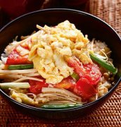 番茄滑蛋盖饭,香菜盖饭 【材料】 牛番茄150公克 鸡蛋1颗 葱1支 金针菇10公克 白饭1大碗 【调 味 料】 盐1小匙 水2大匙 【做法】 1.番茄切大块状;鸡蛋打成蛋液;葱切小段;金针菇去蒂头,备用。 2.热锅,倒入少许油,放入葱段炒
