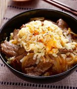 香浓布朗,香浓起司牛丼 【材料】 火锅牛肉片80公克 洋葱30公克 白饭1大碗 双色起司丝30公克 【调 味 料】 日式酱油2大匙 米酒1大匙 水4大匙 【做法】 1.洋葱去皮切丝备用。 2.热锅,倒入少许油,放入洋葱丝炒香,放入所有调味料