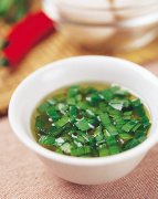 【材料】 青蒜尾2大匙 白醋3大匙 香油少许 【做法】 将白醋倒入碗中,加入切成约0.5公分的青蒜尾段,再加入少许香油即可。 配料.酱料.中式料理.素食