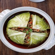 哪瓣洋葱不流泪,最爱青葱少年,香葱卤高丽菜 【材料】 高丽菜800公克 干香菇3朵 红葱头20公克 红萝卜30公克 猪绞肉80公克 香菜少许 水900cc 【调 味 料】 A.酱油1大匙 米酒1大匙 糖少许 白胡椒粉少许 B.酱油1大匙 米酒少许 糖1小匙 盐