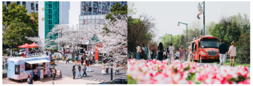从校园到景区,肯德基通过移动餐车与限定产品构建多元消费场景,实现“流量”向“留量”的高效转化。上海同济大学樱花季,肯德基以“樱花粉桃生椰拿铁”和户外咖啡车呼应自然景观,将休憩区与赏花动线结合,形成“花间一杯饮”的沉浸式体验;在成都青白江樱花赏花季,餐车通过樱花主题装饰与汉堡、咖啡等经典产品组合,助力“一朵花撬动全产业链”的文旅模式。