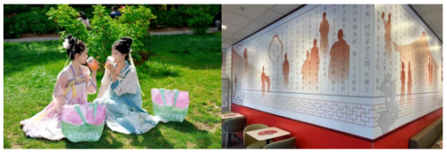 这种文化赋能策略不仅提升品牌溢价能力,更与国家提振消费的政策导向形成共振。例如本文开头提到的甘坑古镇花朝节,肯悦咖啡以“勒杜鹃下打卡点”为核心,将咖啡消费与在地文化景观结合;中国洛阳牡丹文化节,洛阳全城肯德基门店、快闪店换上限定“花漾皮肤”,不仅有浓郁的牡丹与“唐文化”元素扑面而来,更有赏花畅选桶套餐,购买即可获赠洛阳限定浪漫花漾包。廊坊肯德基红楼梦主题餐厅则通过花卉与文学IP的联动,以桃花、牡丹等元素呼应人物故事,打造“沉浸式餐饮空间”,成为了游客和食客们的热门打卡地。