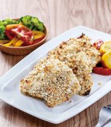 坚果1895,鲁花坚果调和油,坚果烤鱼排 【材料】 鲷鱼排400公克 原味腰果150公克 鸡蛋1颗 面粉100公克 栉瓜100公克 小番茄4颗 【调 味 料】 盐1/4茶匙 香蒜粉1茶匙 白胡椒粉1/6茶匙 白酒2大匙 【做法】 1.鲷鱼排切大块,将所有调味料拌匀