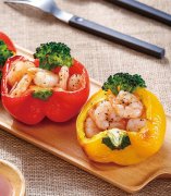 甜涩,甜椒烤虾仁,韭菜花炒虾仁 【材料】 白虾仁200公克 红甜椒1颗 黄甜椒1颗 蒜末5公克 花椰菜100公克 【调 味 料】 盐1/4茶匙 橄榄油2大匙 黑胡椒粒1/2茶匙 义大利综合香料少许 【做法】 1.红甜椒、黄甜椒纵剖开来,挖去籽曩后洗