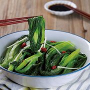 参鸡汤庄的泡菜女孩,鸡汤卤小芥菜 【材料】 小芥菜600公克 嫩姜丝15公克 枸杞10公克 鸡骨250公克 水700cc 【调 味 料】 米酒1大匙 盐1小匙 【做法】 1.枸杞洗净;小芥菜洗净,放入沸水中汆烫,备用。 2.鸡骨洗净,汆烫后冲洗干净,